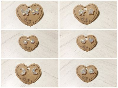 0 savesKawaii glow in the dark handmade resin stud earrings in the shape of butterflies, moons, stars , monstera leaves, hearts and 3D hexagons.