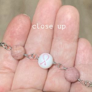 0 savesPink rhodonite faceted gemstones and a glass pink ribbon bead are wire wrapped and connected to a stainless steel chain. Rep yourself or your loved ones for breast cancer awareness!