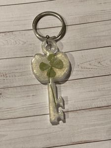 Magic gold resin four leaf clover skeleton key keychain with silver hardware. Get lucky 🍀 Approx. 4 inches in length.