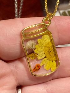 1 savesReal flower Mason jar necklaces in silver and gold.